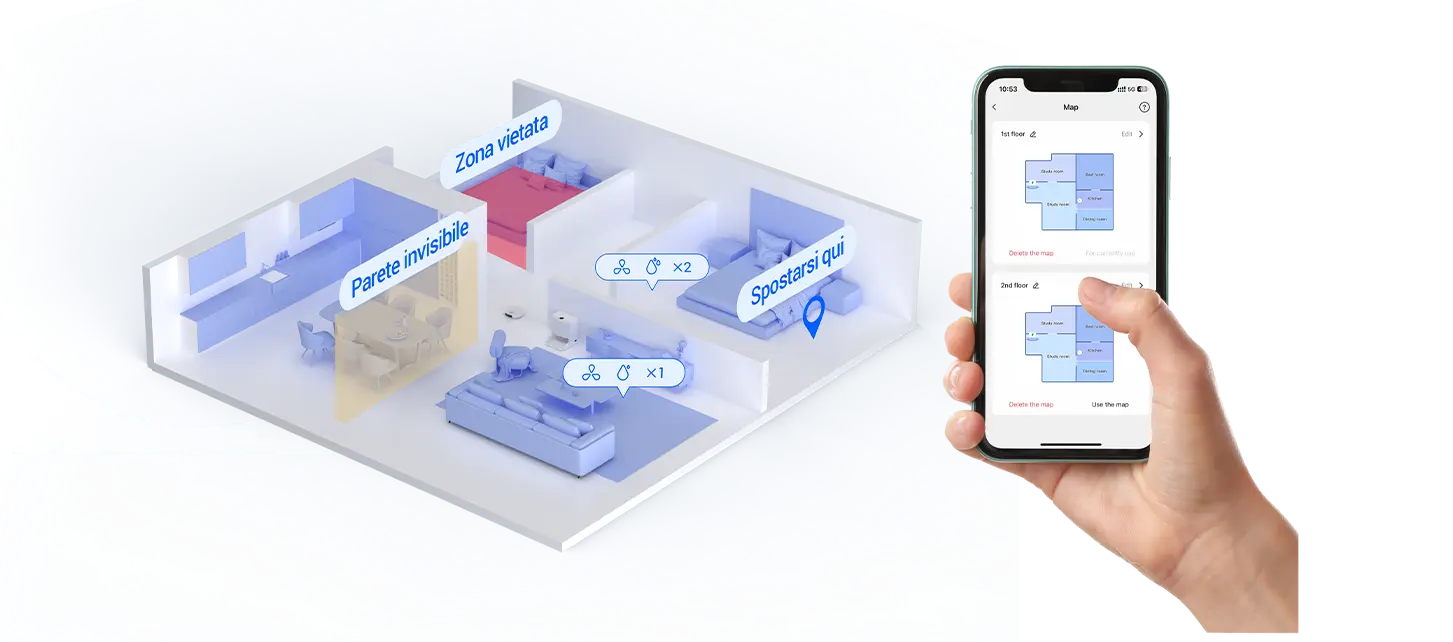 casa. È quindi possibile perfezionare la mappa e impostare missioni di pulizia specifiche